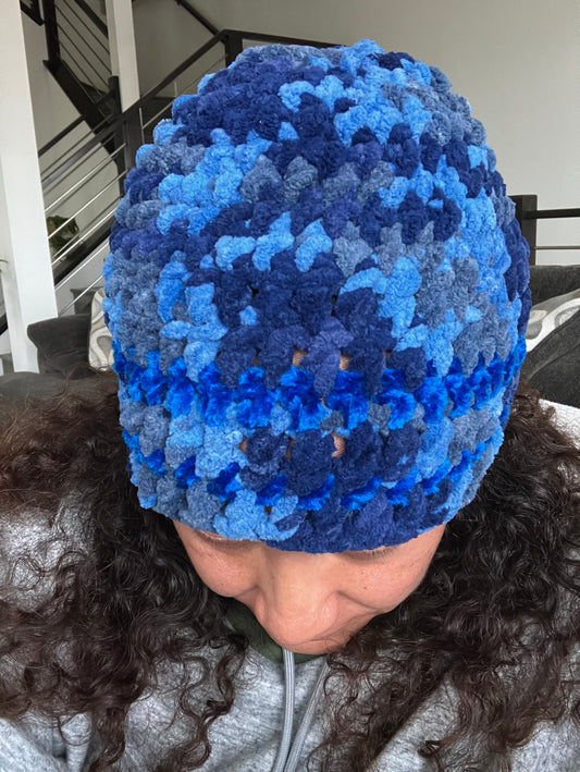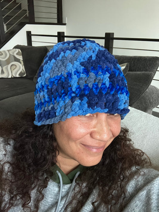 Sold outBlended Blue Freeform Crochet Beanie